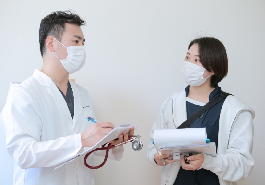 久留米大学を卒業し、そのまま久留米大学病院で初期臨床研修を行いました。高度救急救命センターでの研修中には、ドクターヘリでの出動も経験しました。 その後、久留米大学外科学講座に入局し外科全般の研修を行い、心臓血管外科での急性期医療に従事しました。基礎疾患として高血圧症や脂質異常症、糖尿病などを抱えている患者さまがほとんどで、中には慢性肺疾患をお持ちの方や血液透析を行っている方もおられます。また、手術併発症として脳梗塞や脳出血、肺炎などの感染症、長期療養に伴う筋力低下、栄養障害などがあります。主に心臓、大血管疾患の手術を行っていましたが、全身の診察や治療も必要な能力でした。 高齢化社会が加速する中で、全身を診ることができるのは大きな力になると思い、地域医療を行いたいと思うようになりました。 在宅医療の経験はありませんでしたが、あさひクリニックでは外来も在宅も担当しているため、多くの経験ができると考え入職を決意しました。
